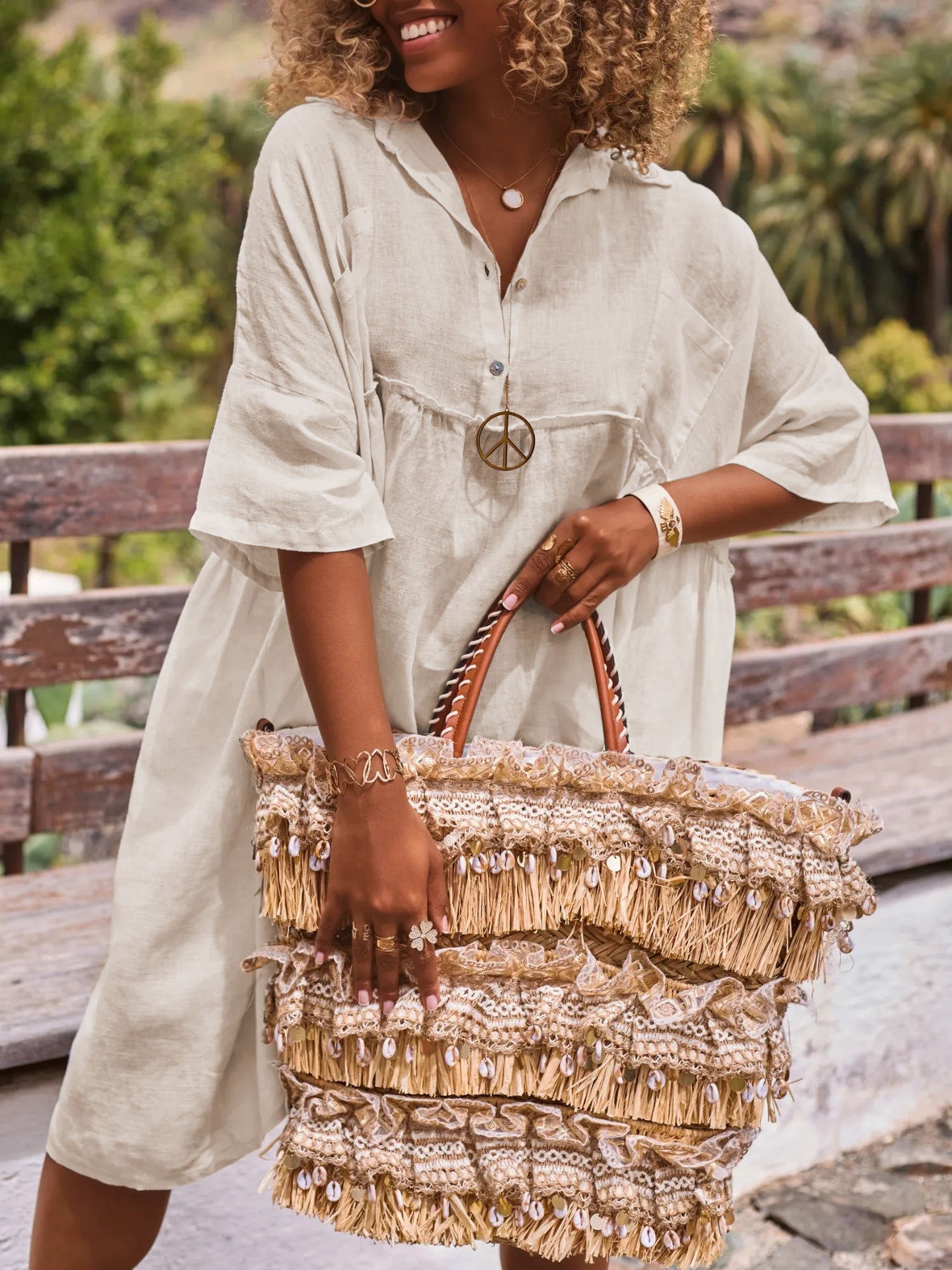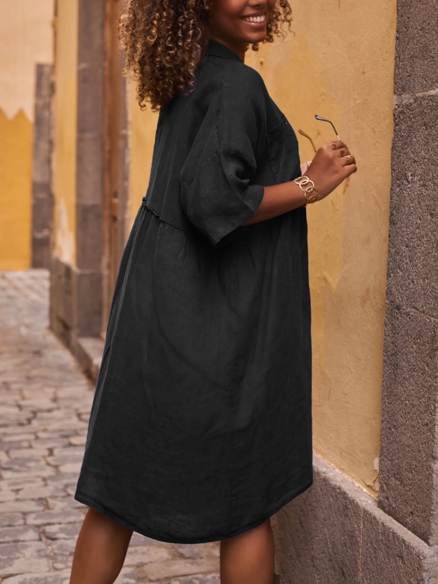 Loose solid color polo collar vacation casual button up literary style fashion dresses