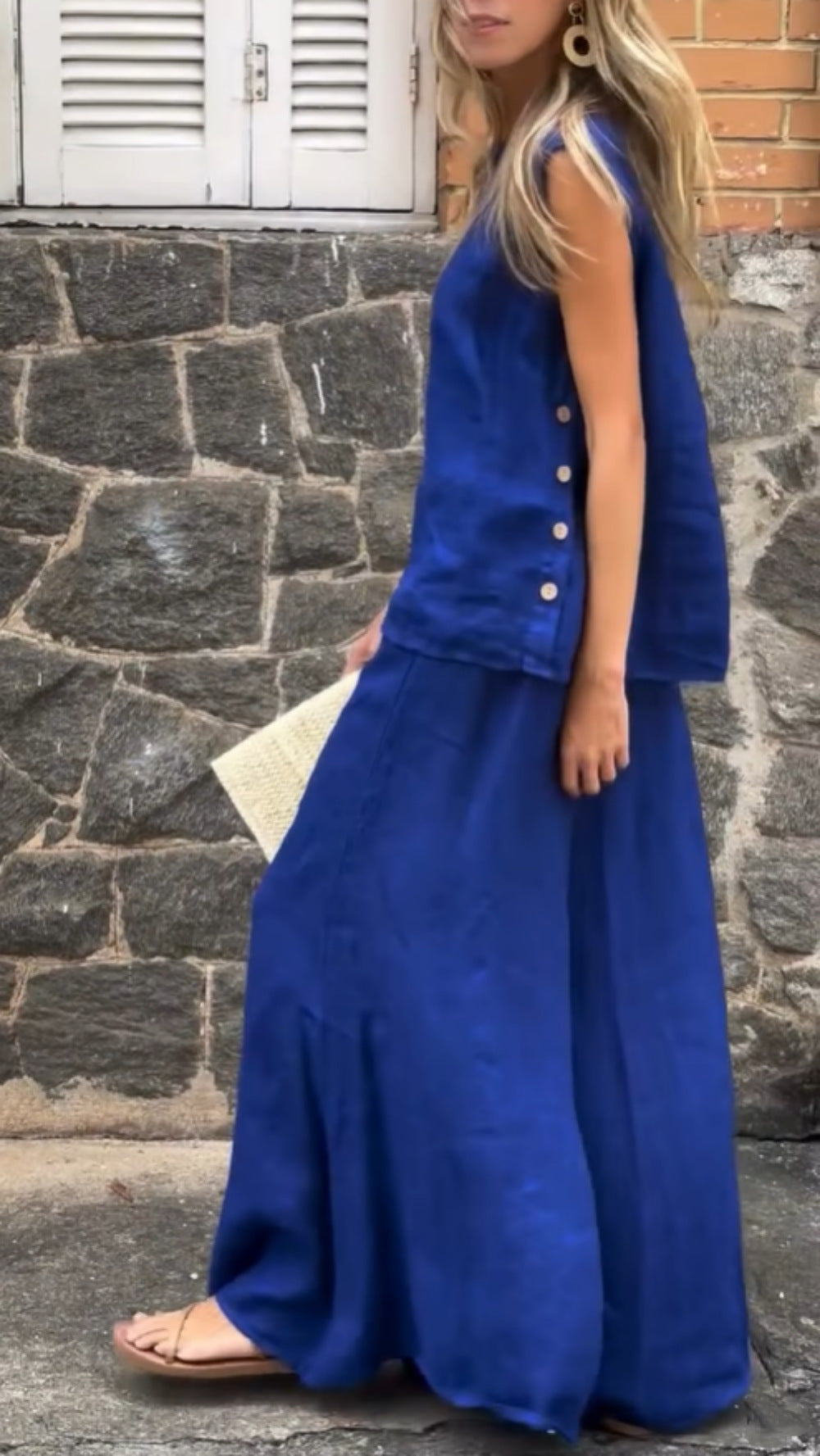 2025 Large Size Loose Solid Color Cotton Linen Sleeveless Pants Two Piece Set