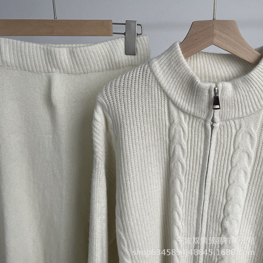 Hot sale loose knit suit women 2024 autumn and winter new zip cardigan jumper + fishtail skirt